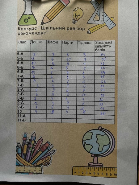 У рамках Всесвітнього дня прибирання активісти ліцею №1 провели рейд «Шкільний ревізор рекомендує» За результатами інспекції найчистішим визнано 5 - Б клас.