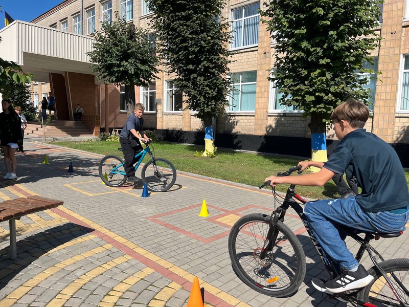 У рамках місячника «Увага! Діти на дорозі» в нашому ліцеї відбувся цікавий інтерактивний урок із безпеки руху велосипедистів. Інспектор сектору СОБ Микола Степанкевич та ЗВР Любов Паламарчук провели тестування з правил дорожнього руху, пригадали з учнями дорожні знаки, засоби безпеки та технічне обладнання велосипеда. Кращі знавці отримали корисні флікери-брелоки. А ще школярі спробували свої сили у конкурсі з фігурної їзди.