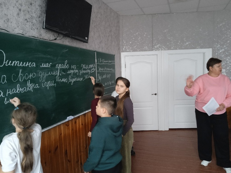 20 листопада – Всесвітній День дитини. Класний керівник 5 – Б класу Матковська Н.Ю. та інспектор сектору "Служба освітньої безпеки" Степанкевич М.В. провели виховний захід, на якому учні обговорювали ситуації про права та обов'язки у казковій вікторині, розмальовували малюнки, підбирали синоніми до слова "дитина", відповідали на запитання у грі "Веселий м'яч".