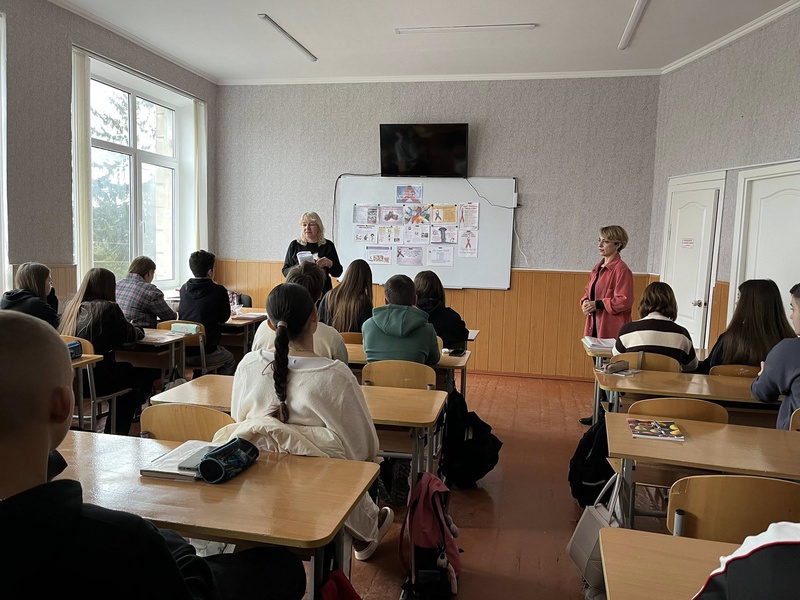 Учителі Любов Паламарчук та Наталя Ратушна разом із десятикласниками пригадали шляхи передачі ВІЛ, розвінчали міфи про його виникнення та поспілкувалися про те, чому толерантність і підтримка — це те, що робить нас людяними.